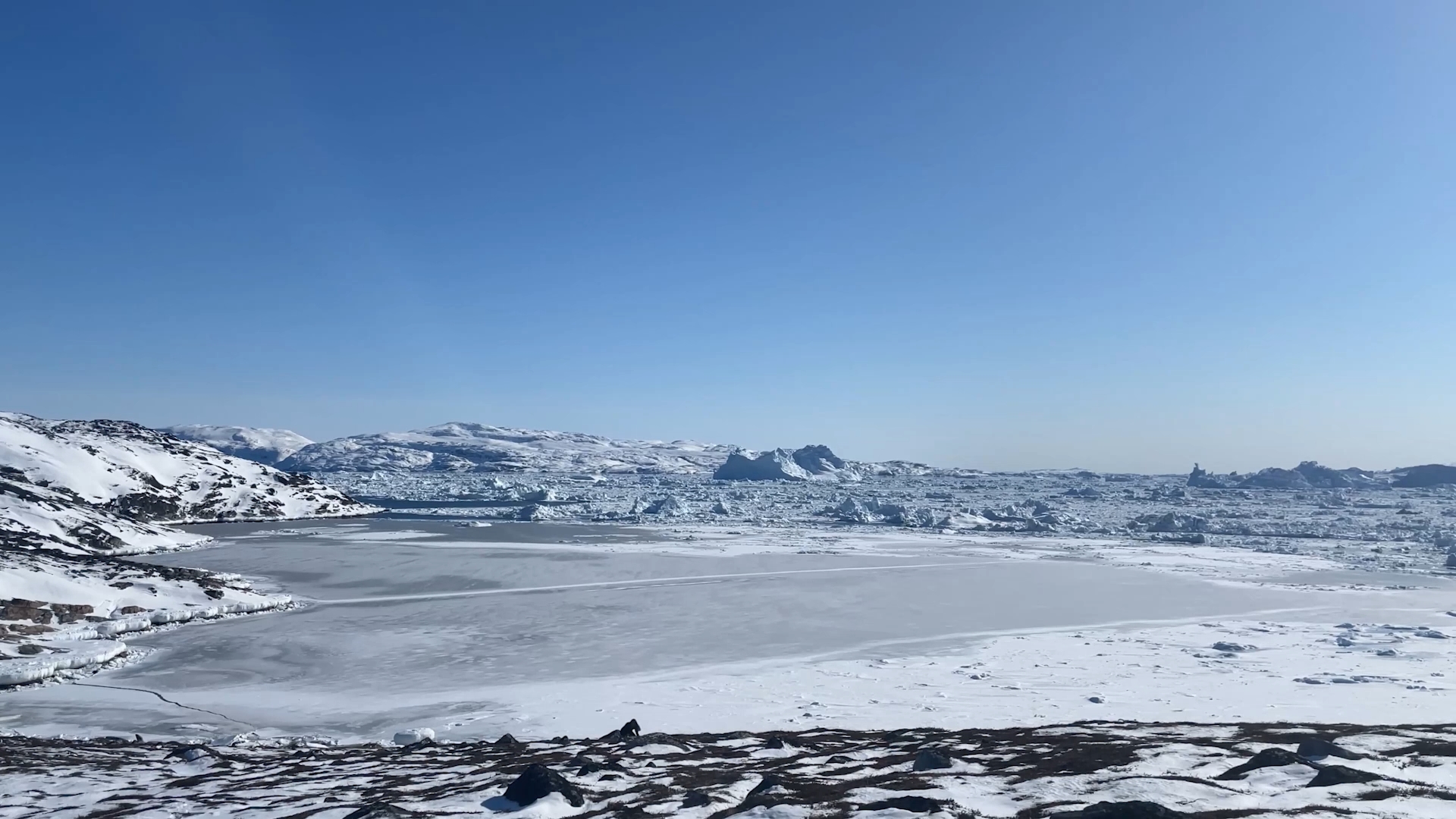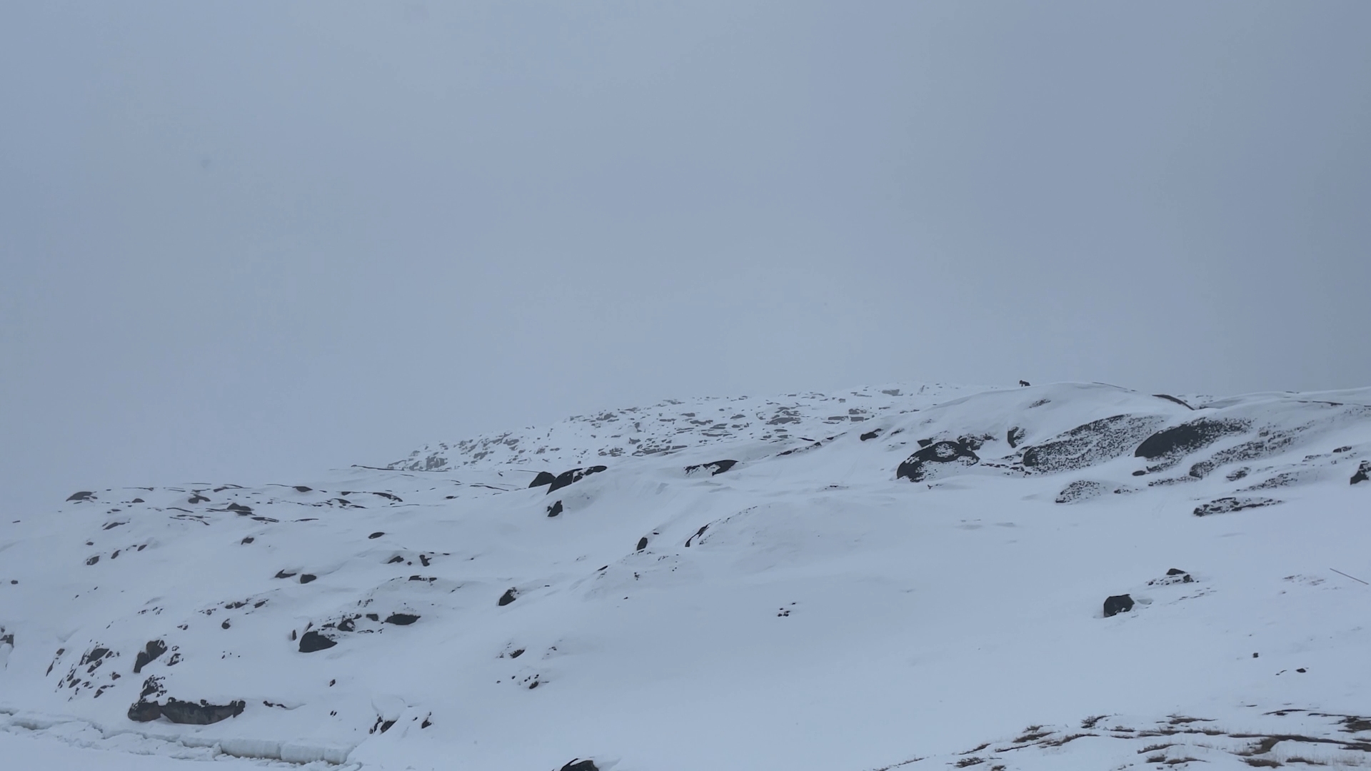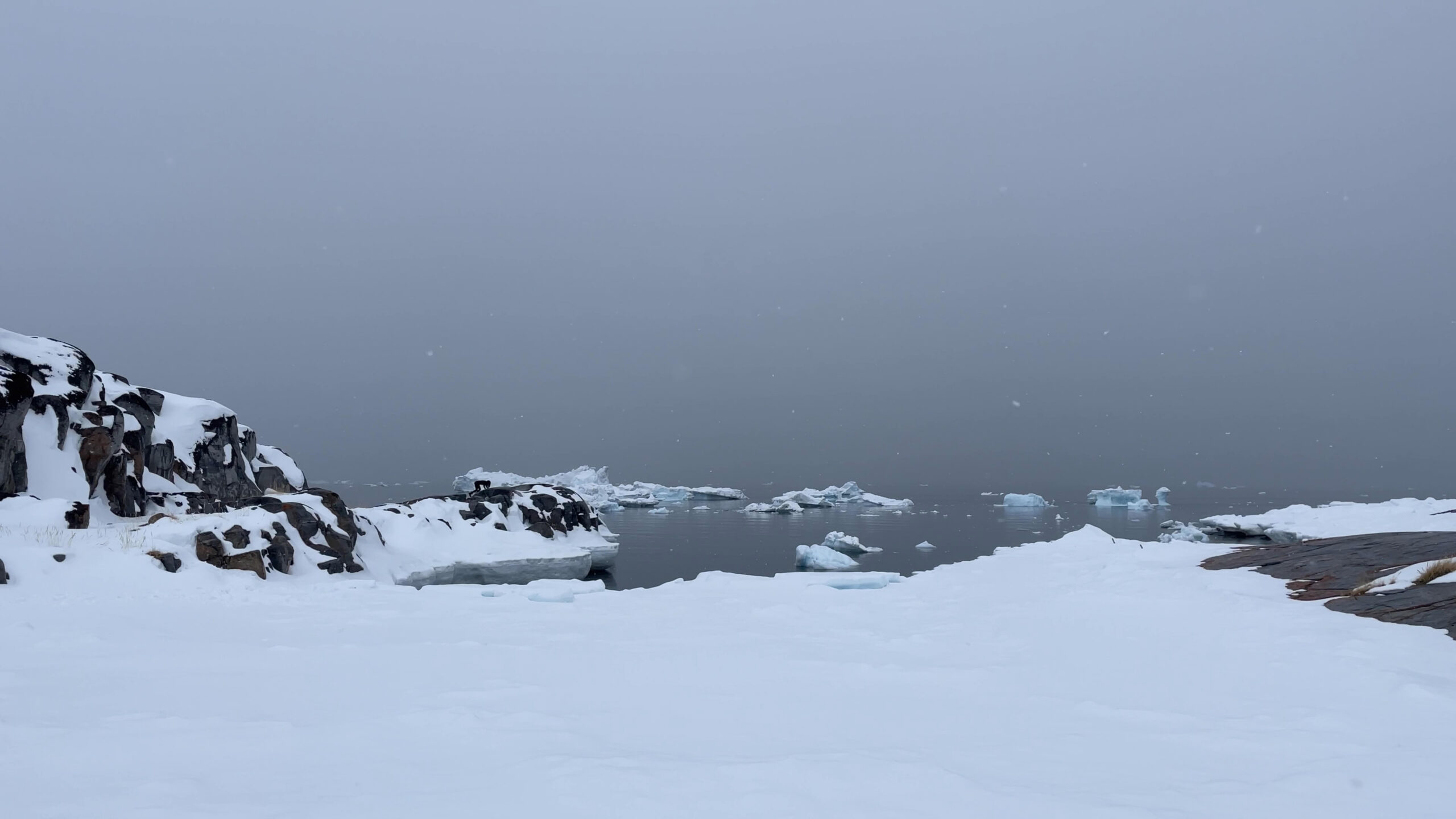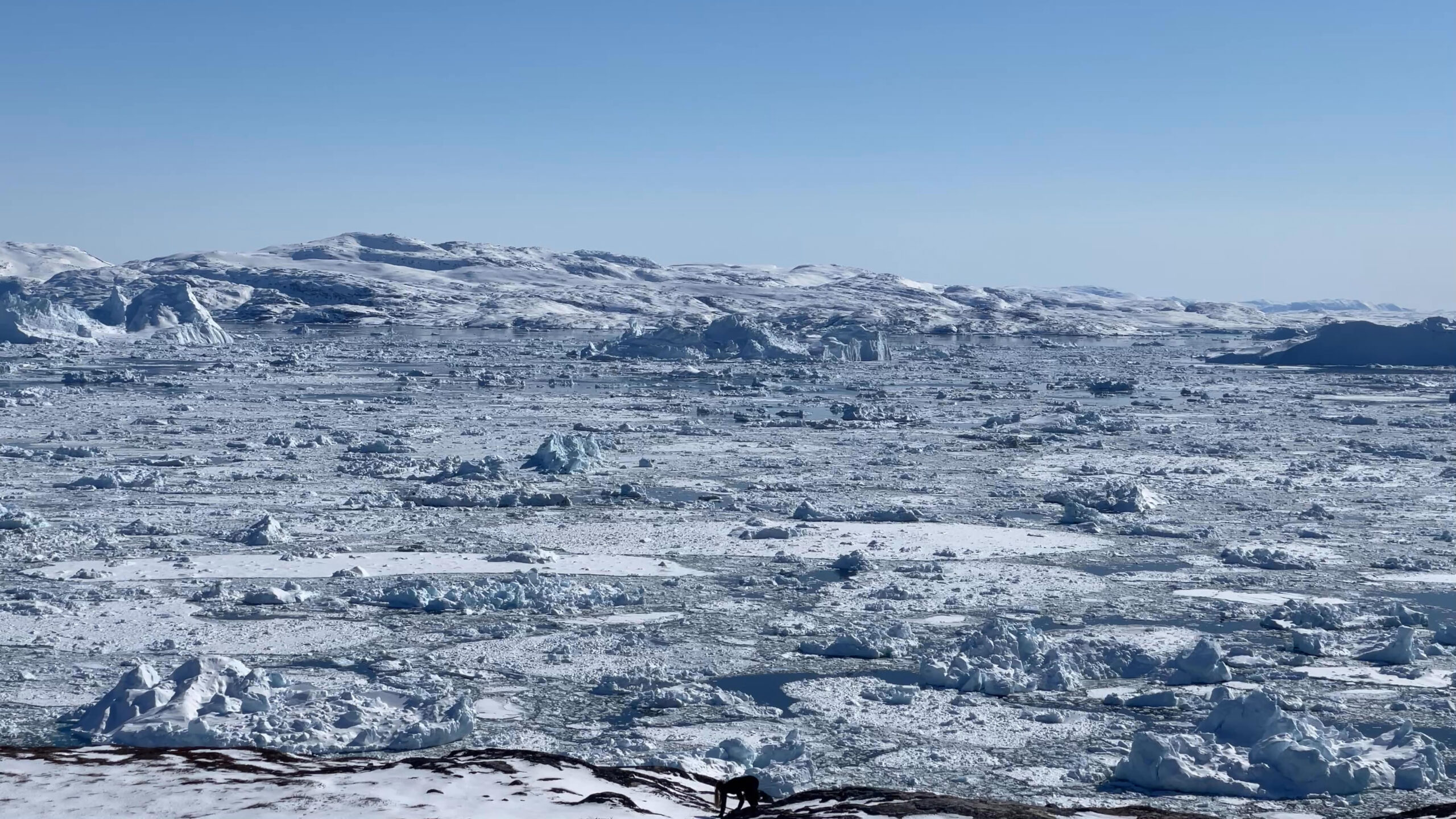 The series of performances initiated at the Oqaatsut residency is an extension of my earlier creative explorations. In a post-humanist spirit, I look at the relationship of humans to other species. This time I was interested in dogs, which occupy a special place in Greenland, both as service animals and as characters in tales and legends. Dogs are unique creatures. As the only domesticated animals in Greenland, they provided a link between the world of humans and wildlife. The short videos capture both my romantic longing to be closer to nature and touch on the theme of the transformation of humans into animals, often present in Greenlandic legends. During the expeditions, which lasted throughout the residency, I experienced the terrain on two as well as four limbs, which expanded the context of the work to include the experience of the body, not only at the level of perceived cold, but also in relation to the sense of balance and non-human perception. In addition, each shot is accompanied by an aura of mystery and ambiguity. Depending on the scale, the figure appears as a hard-to-define, four-legged creature, a human-animal hybrid, a woman-dog, a disappearing black shape.