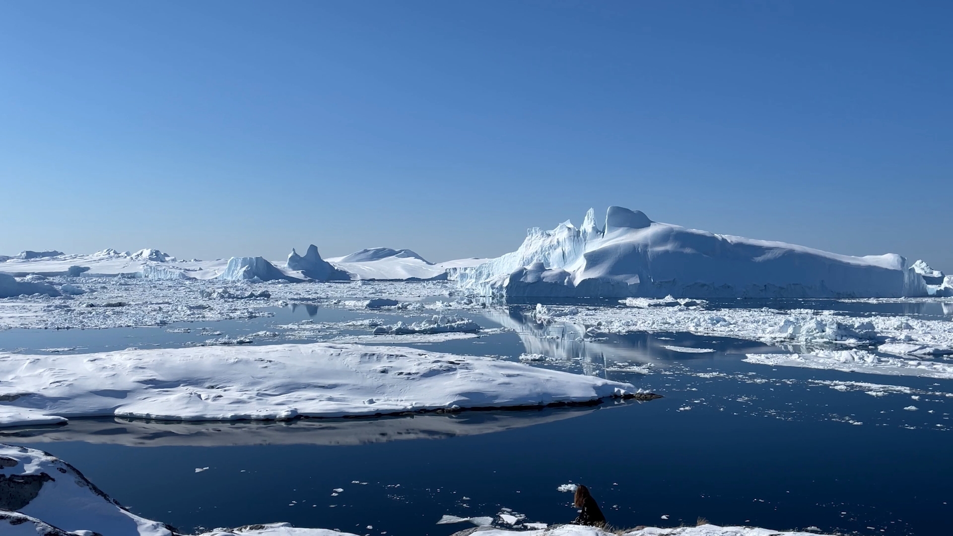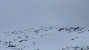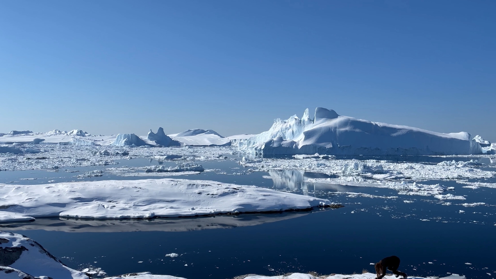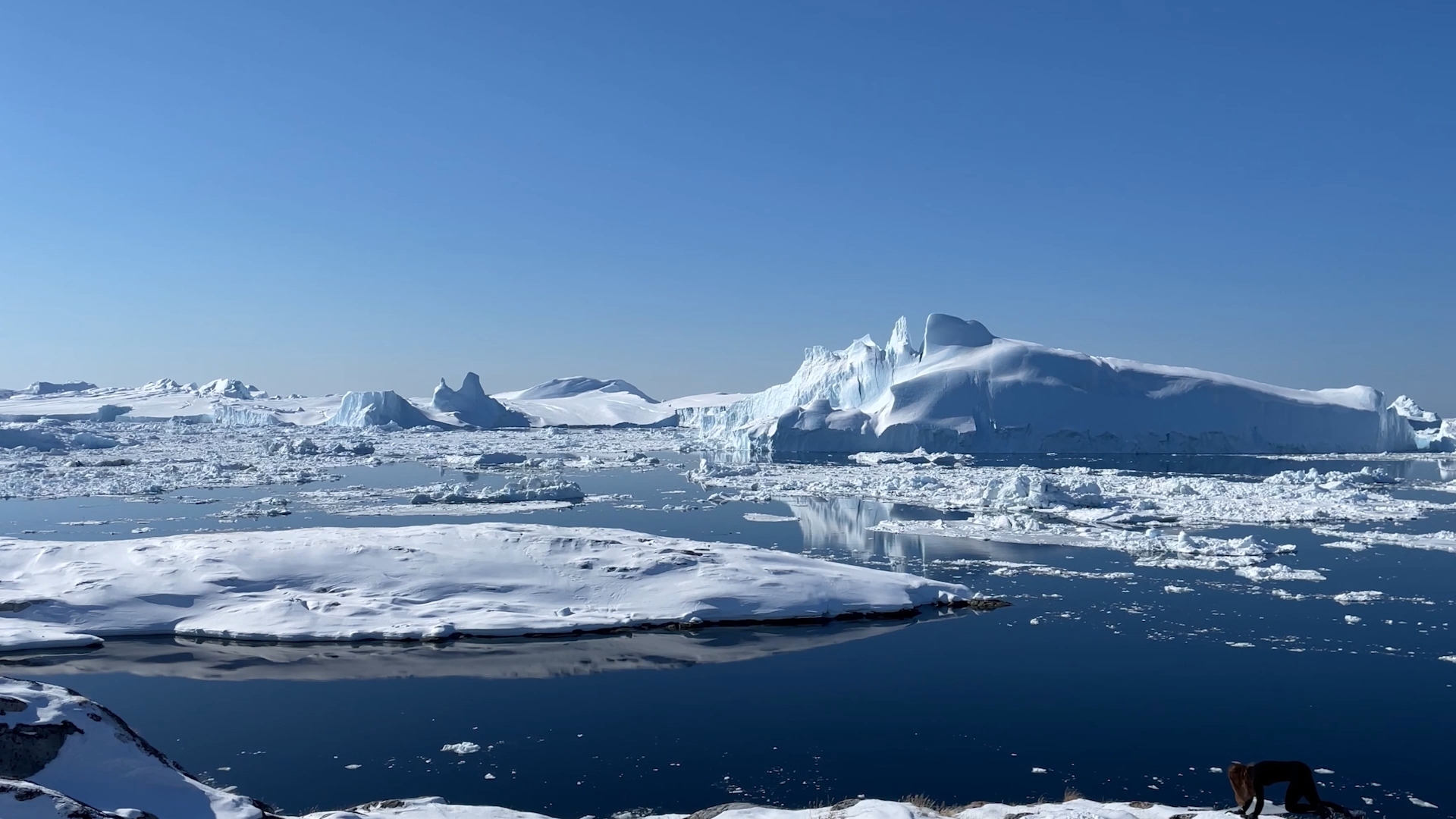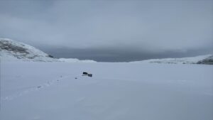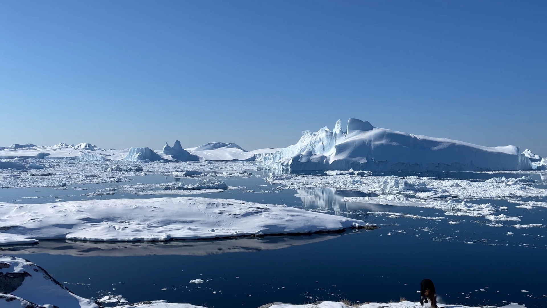 The series of performances initiated at the Oqaatsut residency is an extension of my earlier creative explorations. In a post-humanist spirit, I look at the relationship of humans to other species. This time I was interested in dogs, which occupy a special place in Greenland, both as service animals and as characters in tales and legends. Dogs are unique creatures. As the only domesticated animals in Greenland, they provided a link between the world of humans and wildlife. The short videos capture both my romantic longing to be closer to nature and touch on the theme of the transformation of humans into animals, often present in Greenlandic legends. During the expeditions, which lasted throughout the residency, I experienced the terrain on two as well as four limbs, which expanded the context of the work to include the experience of the body, not only at the level of perceived cold, but also in relation to the sense of balance and non-human perception. In addition, each shot is accompanied by an aura of mystery and ambiguity. Depending on the scale, the figure appears as a hard-to-define, four-legged creature, a human-animal hybrid, a woman-dog, a disappearing black shape.