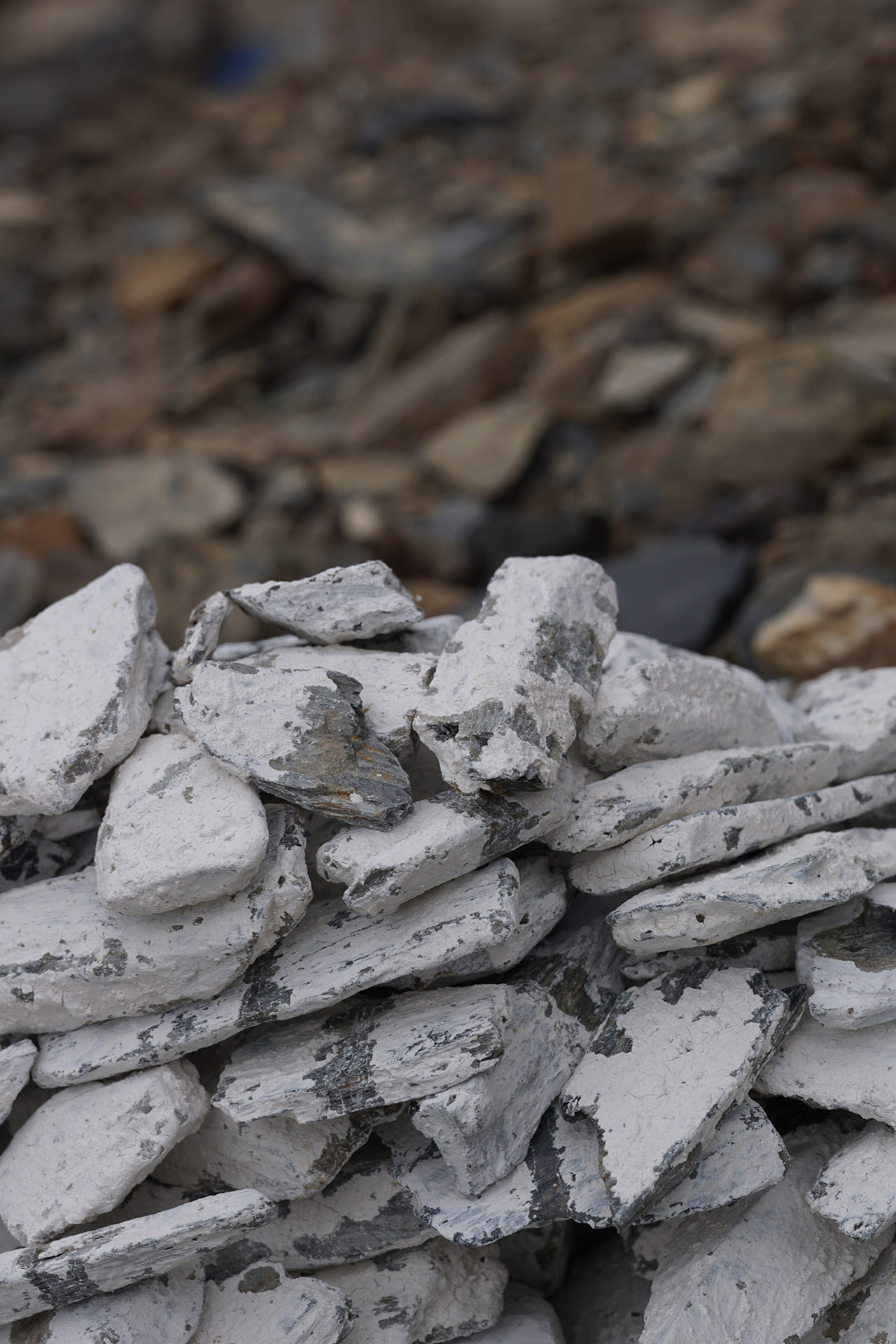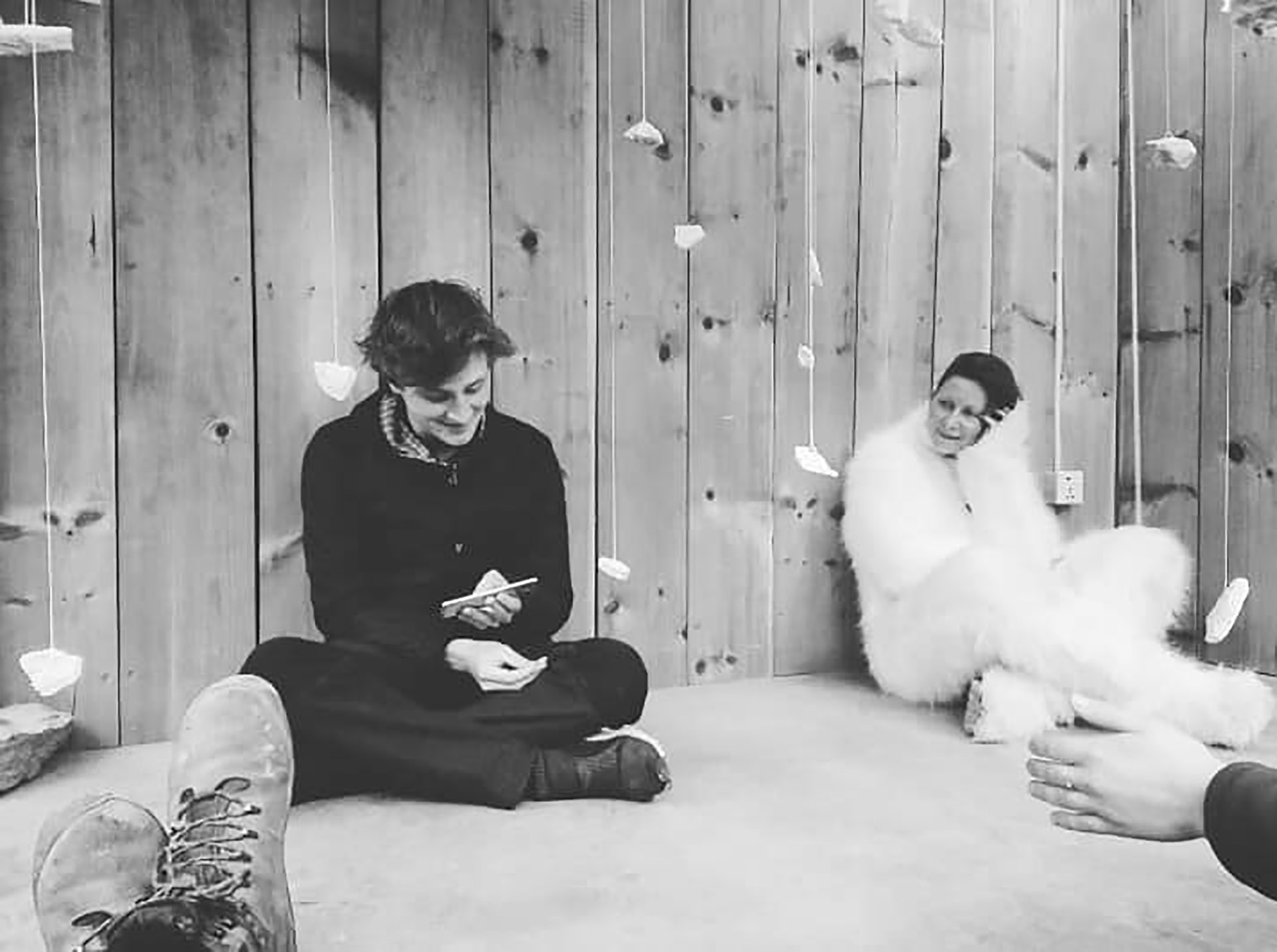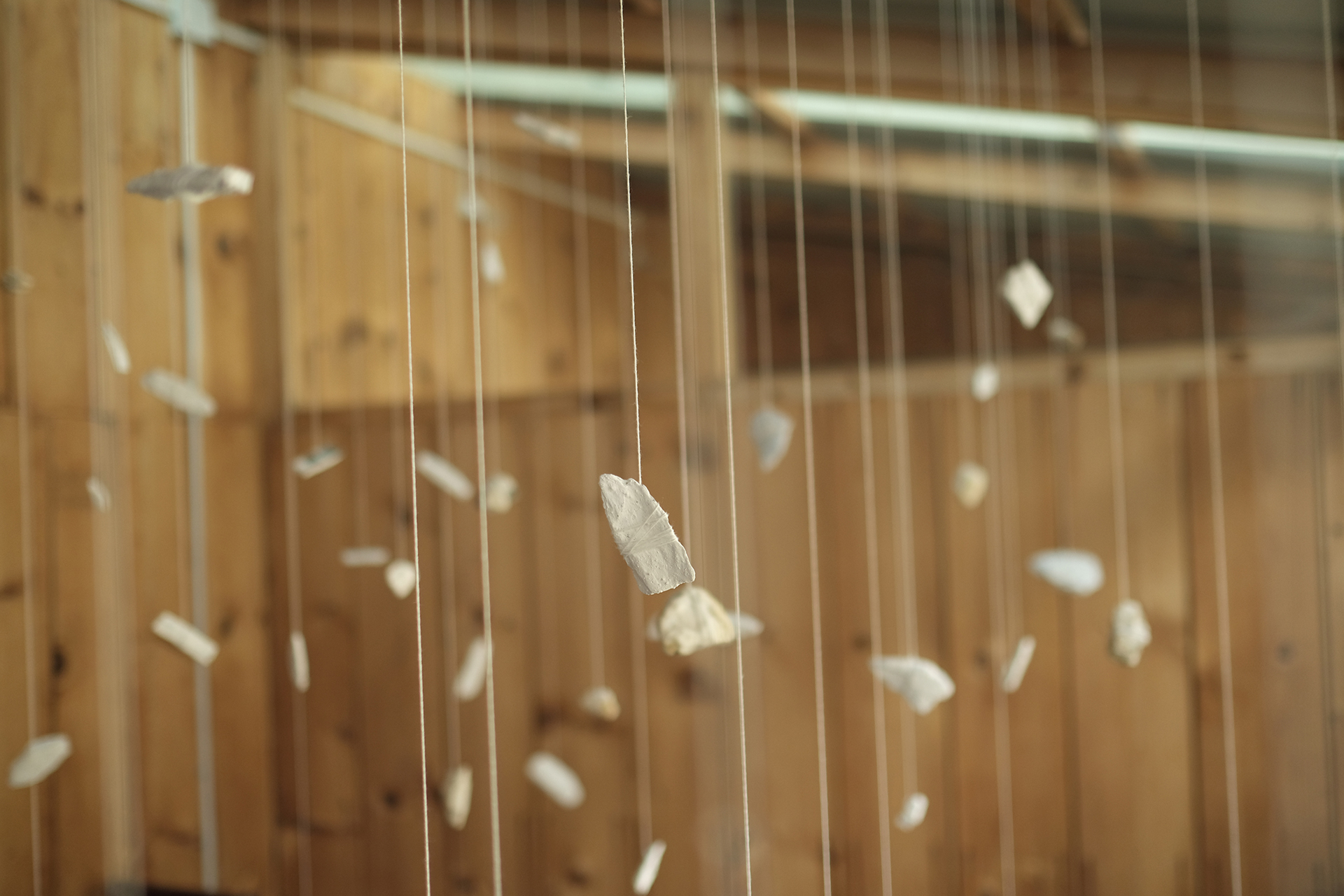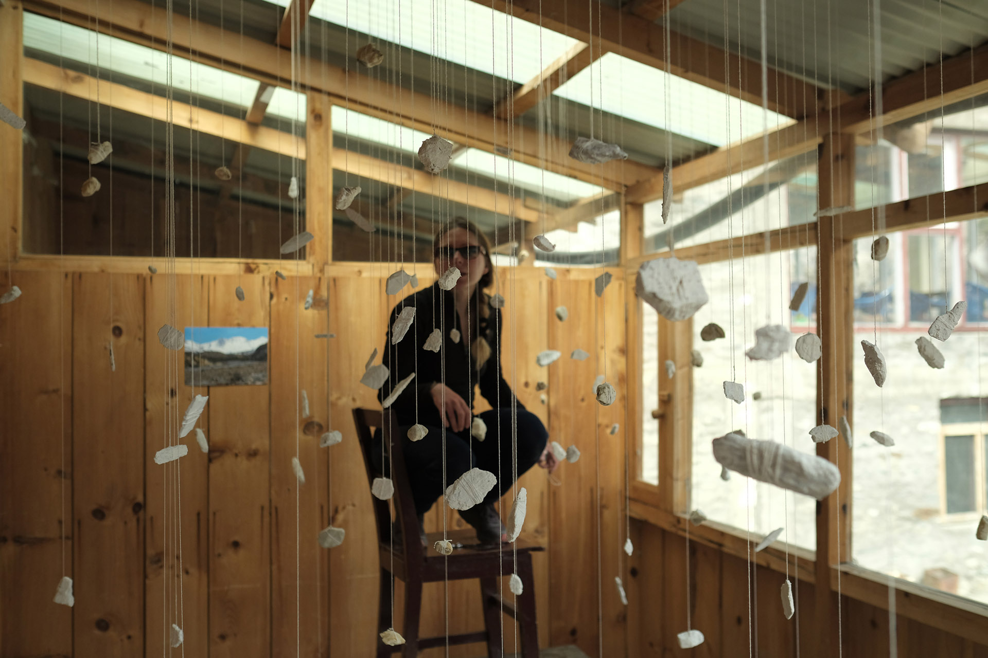 Budynki w Marphie budowane są z kamienia bielonego specjalną farbą. W nawiązaniu do architektury oraz śnieżnego krajobrazu, zawiesiłam w przestrzeni studio zebrane w okolicy kamienie, pomalowane na biało. Instalacja posłużyła mi również jako sceneria dla performansu. Przebrana za Yeti recytowałam nepalskiej publiczności, po polsku, wiersz Wisławy Szymborskiej Wołanie do Yeti. Do akcji włączyły się inne osoby, ostatecznie wiersz został odczytany w trzech językach: po polsku, angielsku i holendersku. Po zakończeniu pokazu zebrałam rozwieszone kamienie i zbudowałam z nich mały czortem, wpisując je tym samym w lokalny krajobraz i oddając miejscu, z którego pochodziły.