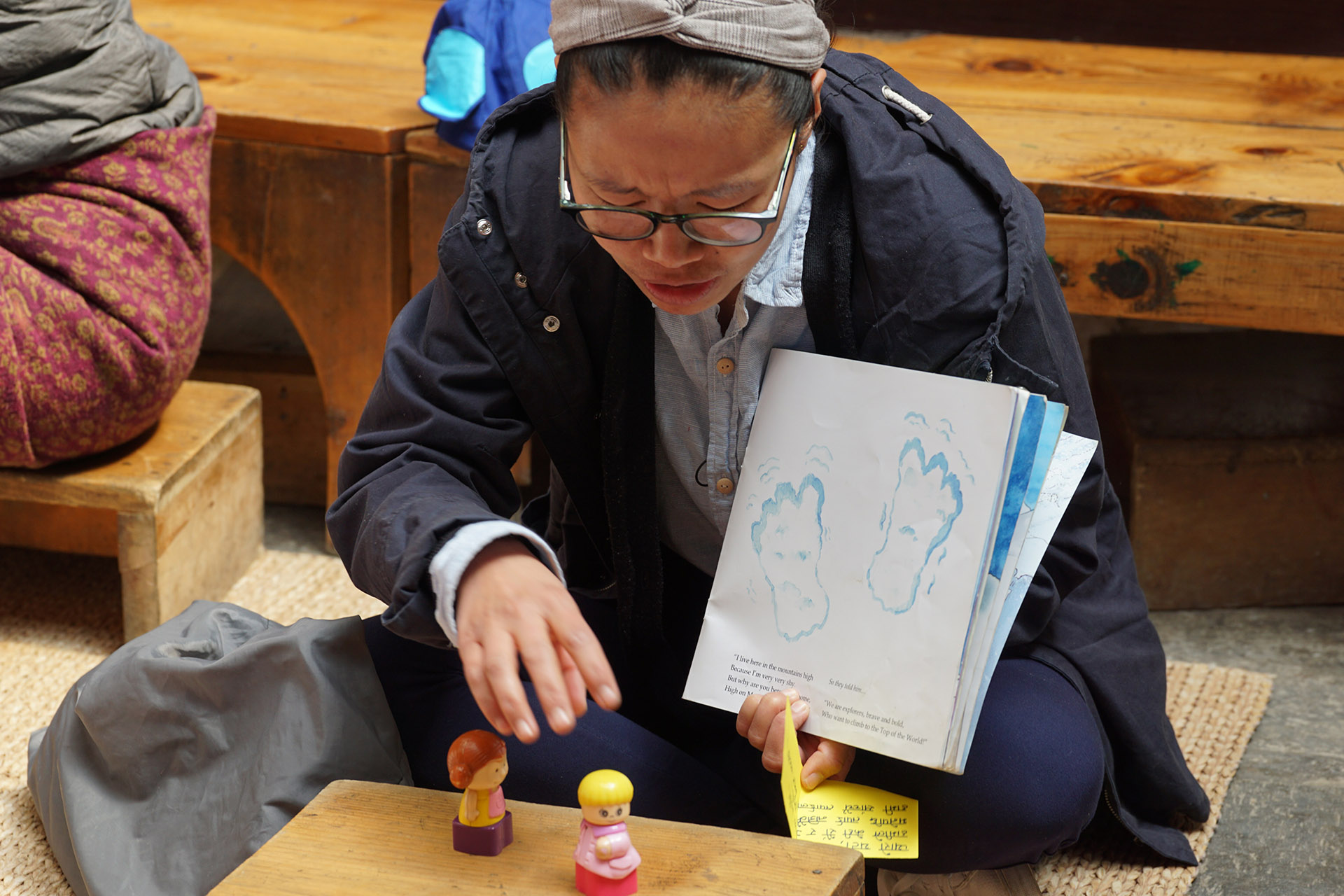 Założeniem pobytu na rezydencji w Marpha Foundation było również uczestniczenie w życiu fundacji oraz wspieranie edukacji artystycznej. Ponieważ mój główny projekt był związany z Yeti, postanowiliśmy wymyślić dla dzieci zabawę w szukanie Yeti. Ku mojemu zaskoczeniu okazało się, że dzieci z Marphy (okręg Dhaulagiri), nie znają legendy o Yeti. Aby przeprowadzić zaplanowaną zabawę opowiedziano maluchom bajkę o Yeti.