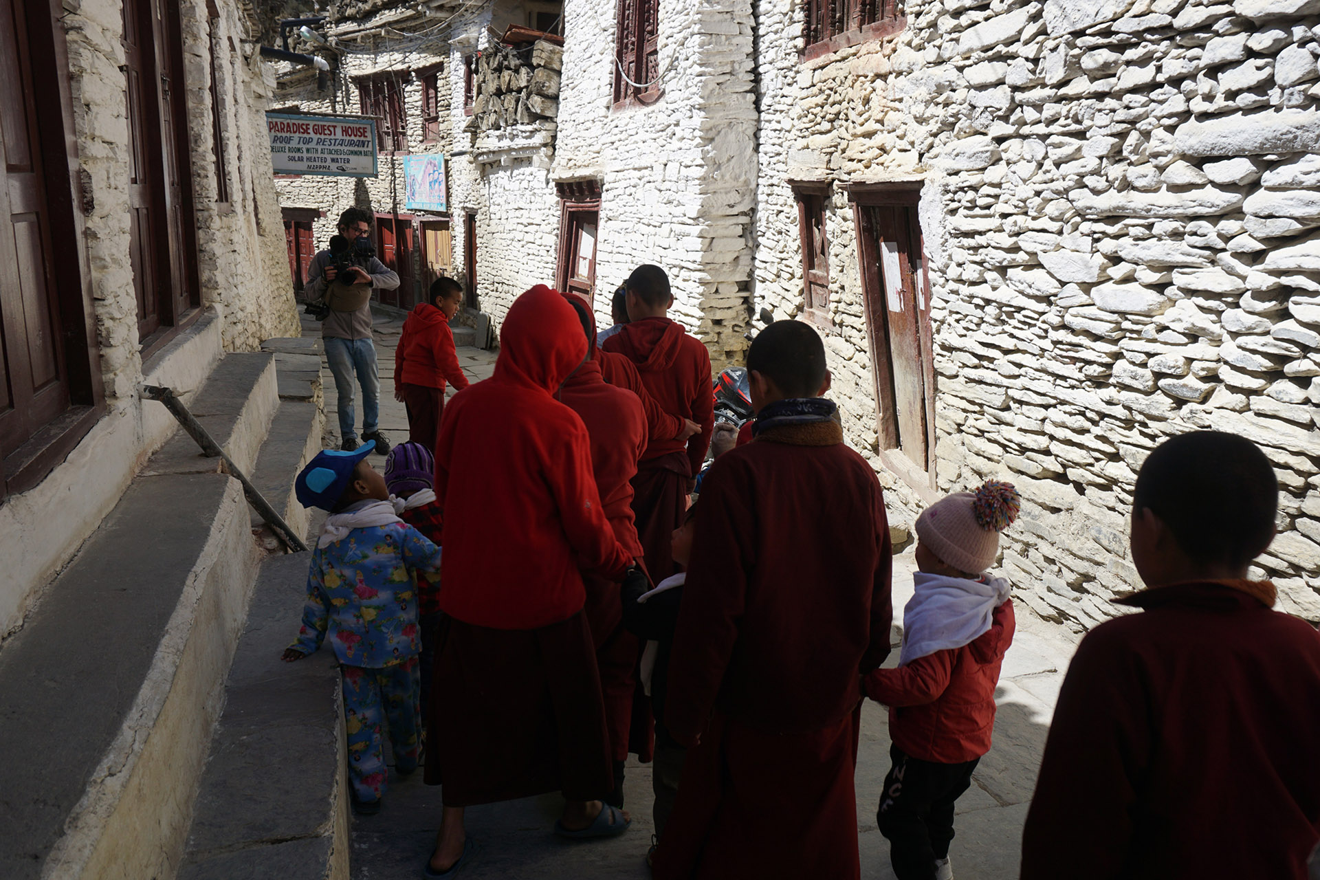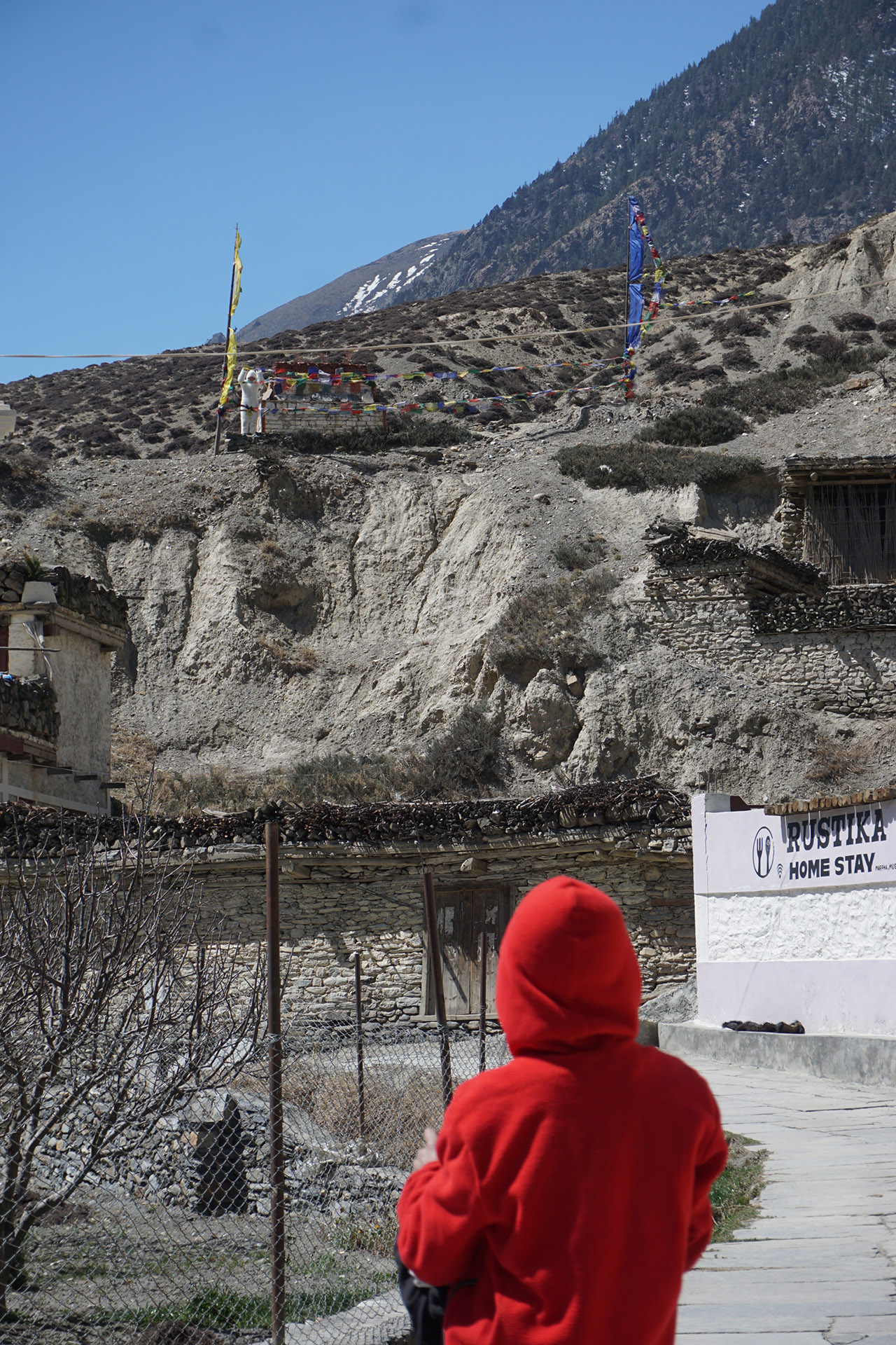 The assumption of the residency at the Marpha Foundation was also participation in the life of the foundation and supporting artistic education. Because my main project was related to Yeti, we decided to come up with play looking for Yeti for kids. I was surprised, it turned out that children from Marpha (Dhaulagiri district) do not know the legend of Yeti. In order to carry out the planned play, a fairy tale about Yeti was told to the kids.