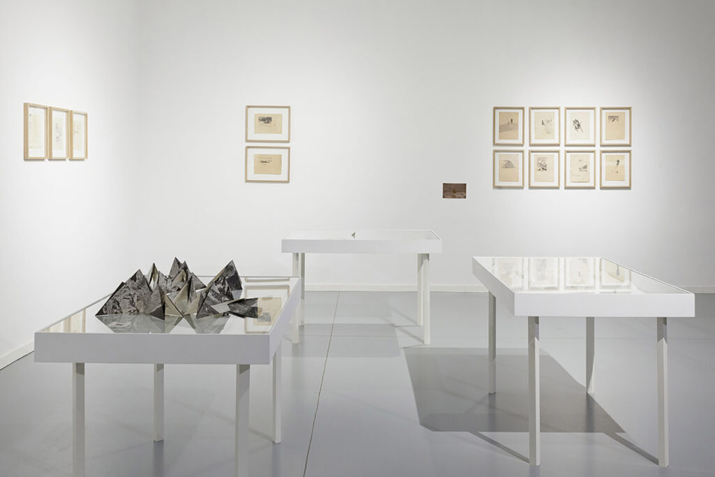 The individual exhibition is a kind of a pseudo anthropological „walk” during which the viewer has the opportunity to walk among the „exhibits” of not entirely clear status. The axis of the exhibition is a mockumentary film Secrets of the Himalayas, an object – a seated Yetica, and large-format photos – documentation of a performance that took place during a residency in Nepal. The movie is an author’s narrative in the convention of a nature film. The observed heroine is a representative of a species that interests cryptozoologists – Yetica. The confusion of the order of fiction and reality extends to the remaining elements of the exhibition. In the gallery space you can find a collection of stones from the Yeti habitat, old photographs owned by the artist’s family, models of eight-thousanders peeks, photos of glaciers courtesy of a glaciologist, collages made of quotes found in the Internet, on which the figures of the first conquerors of the Himalayas are recognizable. Objects created or found by me do not remain only what they are, I give them another meaning by building a narration (text in the film, titles of individual works).