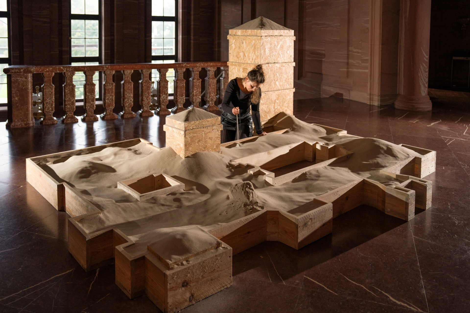 There is also a clear allusion to the “castles in the sand” built by states, organizations, societies, and individuals such as Emperor Wilhelm II. For the artist, ruins are a space in which organized masculinity and its domination are transformed into something open to diversity and change. Rammer literally and figuratively plays in someone else’s sandbox.”